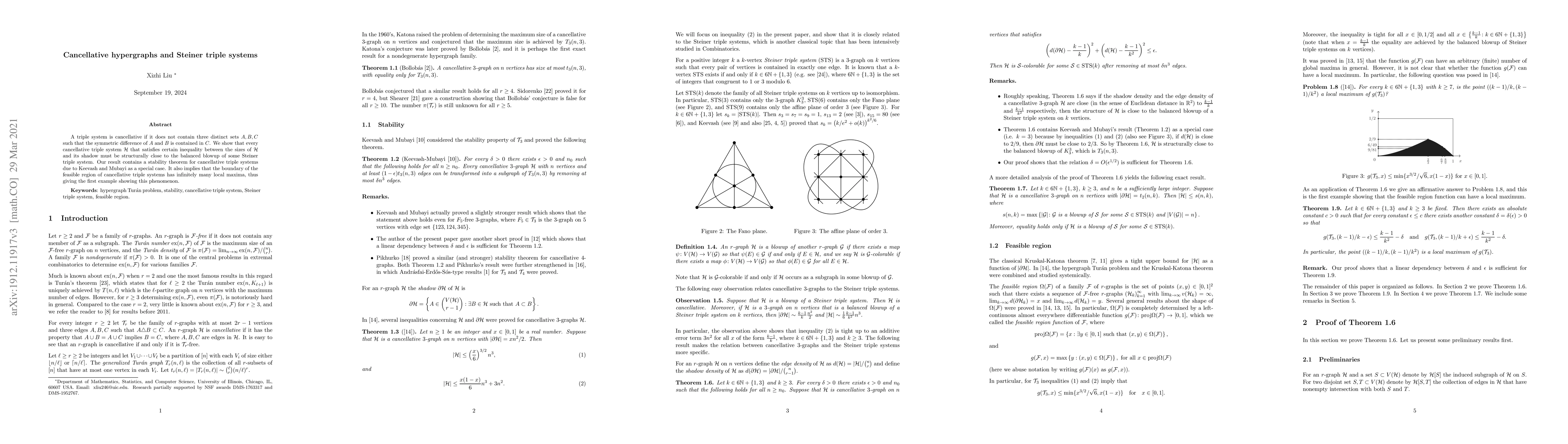 This paper demonstrates that cancellative triple systems adhering to a specific size inequality are structurally similar to balanced blowups of Steiner triple systems. It also establishes a stability theorem and reveals that the boundary of feasible cancellative triple systems has infinitely many local maxima.