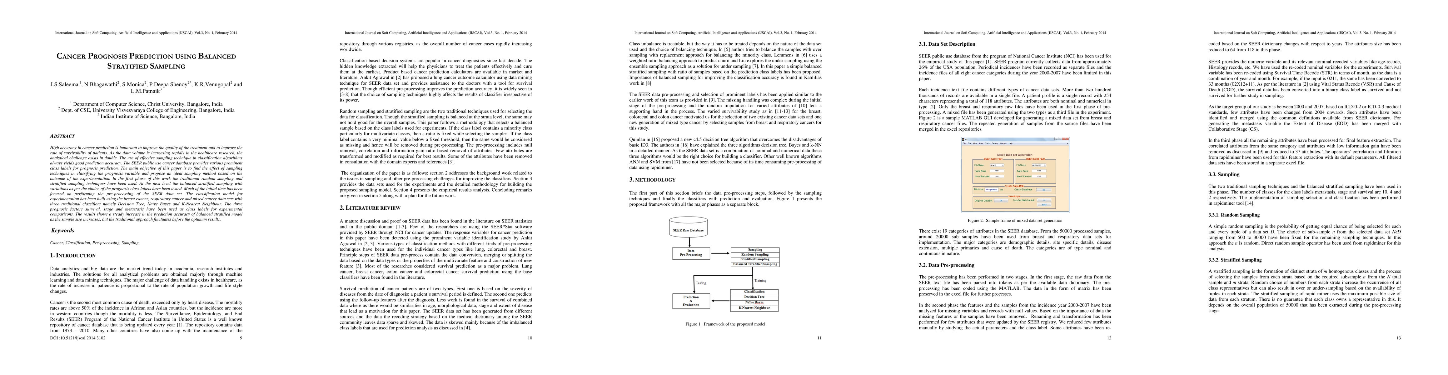 This paper investigates the impact of various sampling techniques on cancer prognosis prediction using the SEER public use database. It finds that balanced stratified sampling significantly improves prediction accuracy compared to traditional random and stratified sampling, especially as sample size increases.