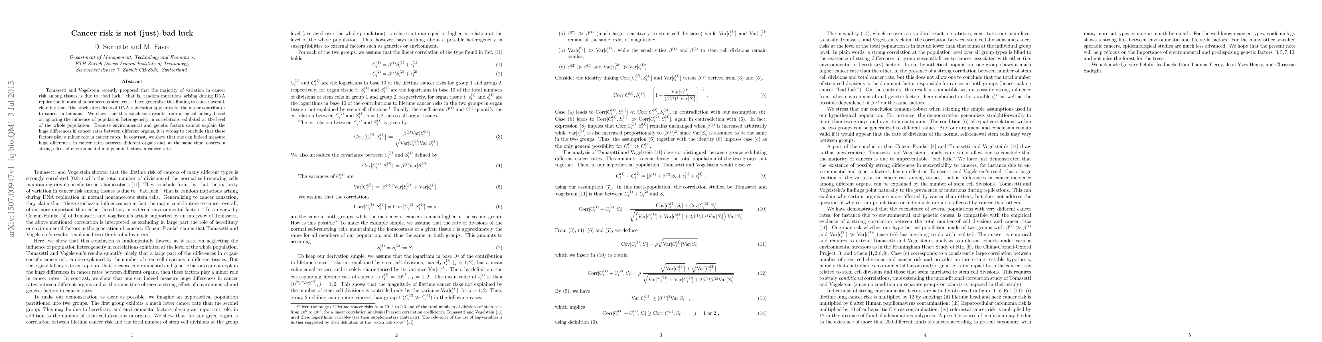 This paper argues against the notion that most cancer risk is due to "bad luck," demonstrating that the conclusion overlooks population heterogeneity and the significant roles of environmental and genetic factors in cancer rates. It emphasizes that substantial differences in cancer rates across organs are not solely attributable to random mutations.