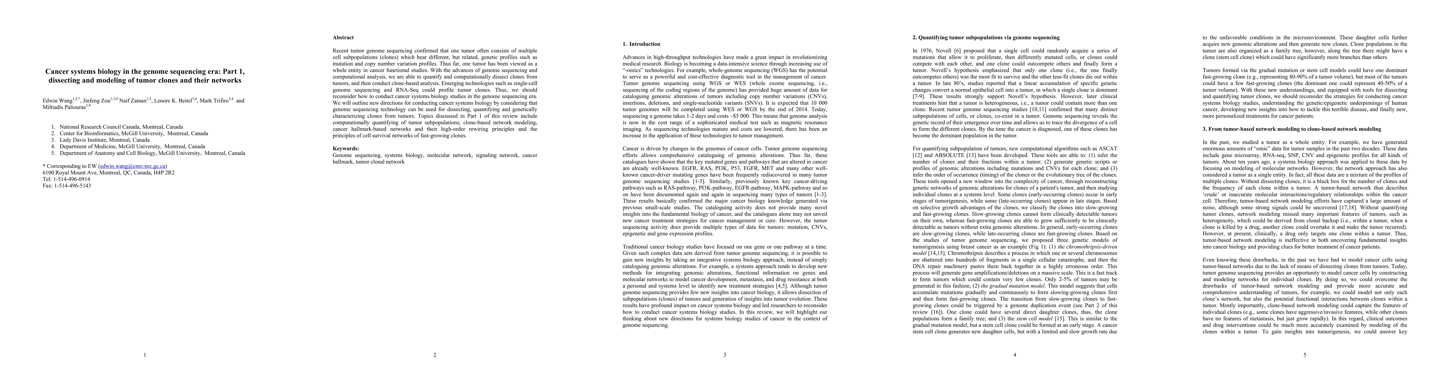 This paper discusses how advances in genome sequencing allow for the dissection and modeling of tumor clones and their networks, shifting cancer systems biology studies from a whole tumor perspective to a clone-based analysis. It emphasizes the importance of computational methods in quantifying tumor subpopulations and developing clone-based network models.