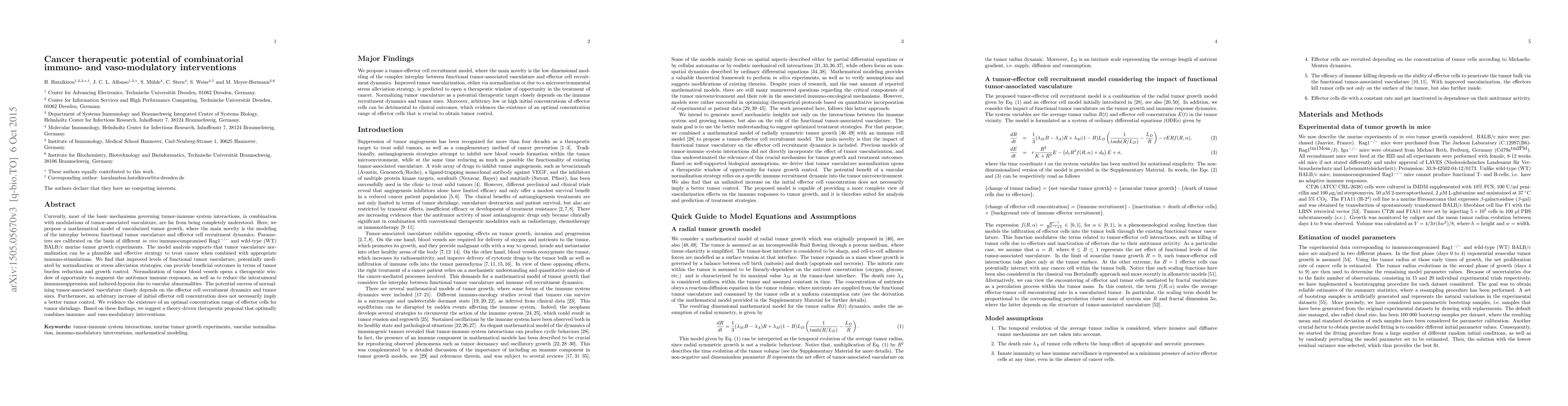 This paper proposes a mathematical model to explore the interplay between tumor vasculature and immune cell recruitment, suggesting that normalizing tumor vasculature can enhance cancer treatment when combined with immuno-stimulation. The study finds an optimal range of effector cells for effective tumor control, advocating for a combinatorial approach to immuno- and vaso-modulatory interventions.