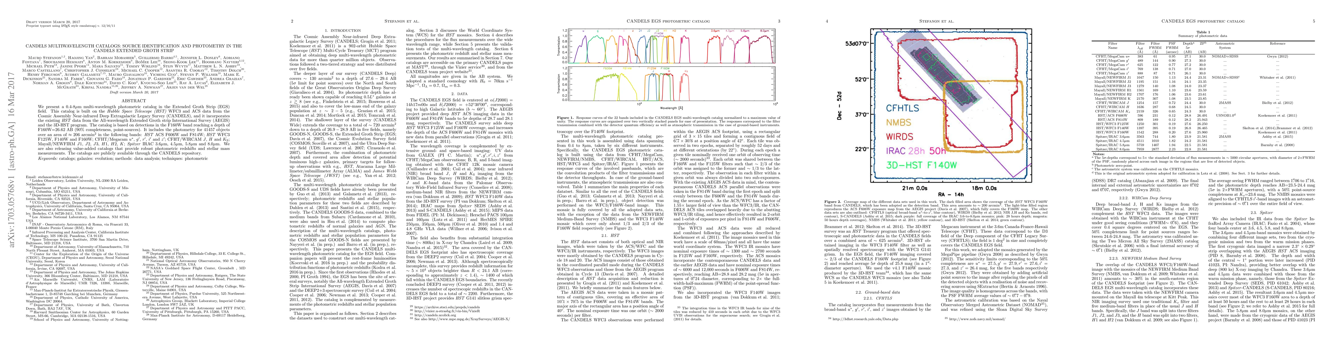 We present a 0.4-8$\mu$m multi-wavelength photometric catalog in the Extended Groth Strip (EGS) field. This catalog is built on the Hubble Space Telescope (HST) WFC3 and ACS data from the Cosmic Assembly Near-infrared Deep Extragalactic Legacy Survey (CANDELS), and it incorporates the existing HST data from the All-wavelength Extended Groth strip International Survey (AEGIS) and the 3D-HST program. The catalog is based on detections in the F160W band reaching a depth of F160W=26.62 AB (90% completeness, point-sources). It includes the photometry for 41457 objects over an area of $\approx 206$ arcmin$^2$ in the following bands: HST ACS F606W and F814W; HST WFC3 F125W, F140W and F160W; CFHT/Megacam $u^*$, $g'$, $r'$, $i'$ and $z'$; CFHT/WIRCAM $J$, $H$ and $K_\mathrm{S}$; Mayall/NEWFIRM $J1$, $J2$, $J3$, $H1$, $H2$, $K$; Spitzer IRAC $3.6\mu$m, $4.5\mu$m, $5.8\mu$m and $8.0\mu$m. We are also releasing value-added catalogs that provide robust photometric redshifts and stellar mass measurements. The catalogs are publicly available through the CANDELS repository.