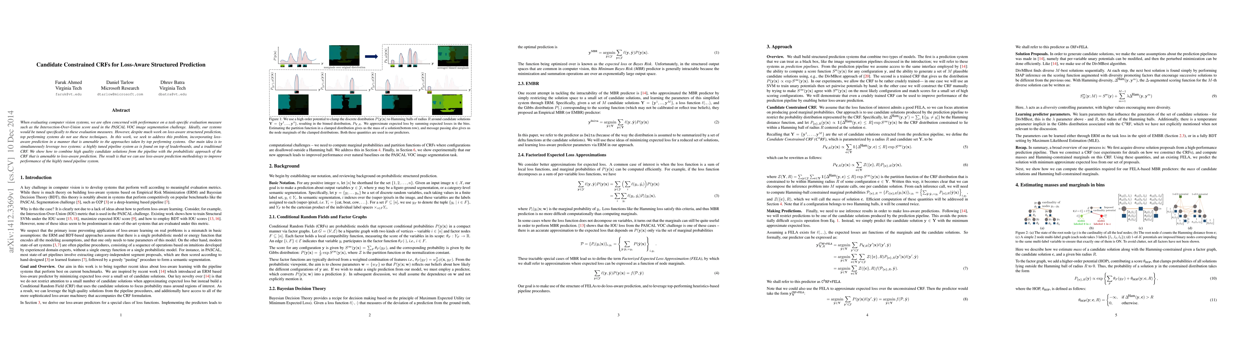 When evaluating computer vision systems, we are often concerned with performance on a task-specific evaluation measure such as the Intersection-Over-Union score used in the PASCAL VOC image segmentation challenge. Ideally, our systems would be tuned specifically to these evaluation measures. However, despite much work on loss-aware structured prediction, top performing systems do not use these techniques. In this work, we seek to address this problem, incorporating loss-aware prediction in a manner that is amenable to the approaches taken by top performing systems. Our main idea is to simultaneously leverage two systems: a highly tuned pipeline system as is found on top of leaderboards, and a traditional CRF. We show how to combine high quality candidate solutions from the pipeline with the probabilistic approach of the CRF that is amenable to loss-aware prediction. The result is that we can use loss-aware prediction methodology to improve performance of the highly tuned pipeline system.