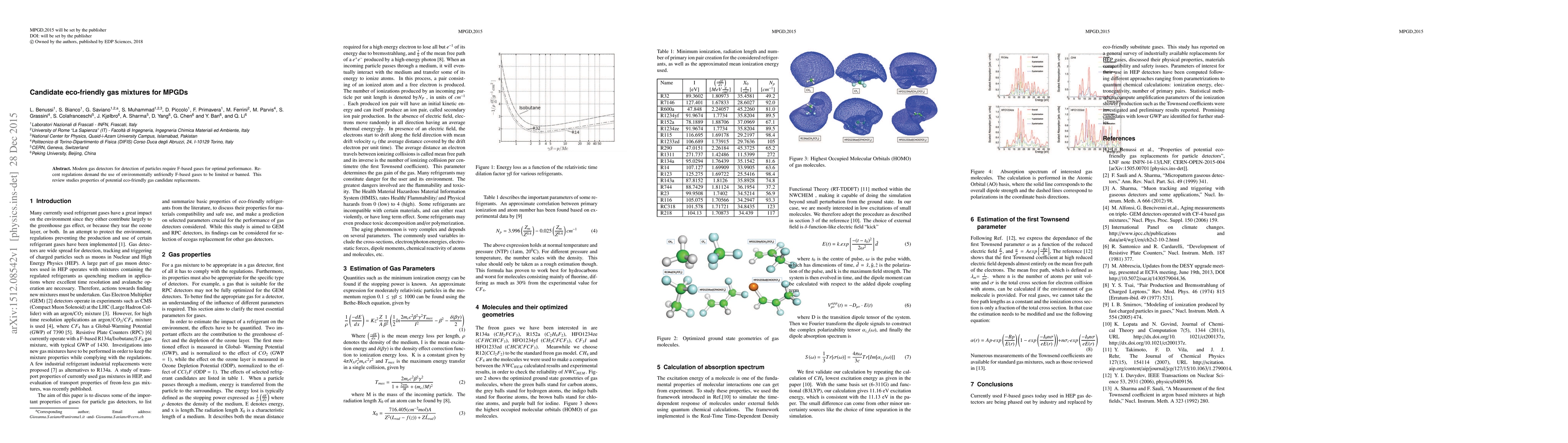 Modern gas detectors for detection of particles require F-based gases for optimal performance. Recent regulations demand the use of environmentally unfriendly F-based gases to be limited or banned. This review studies properties of potential eco-friendly gas candidate replacements.