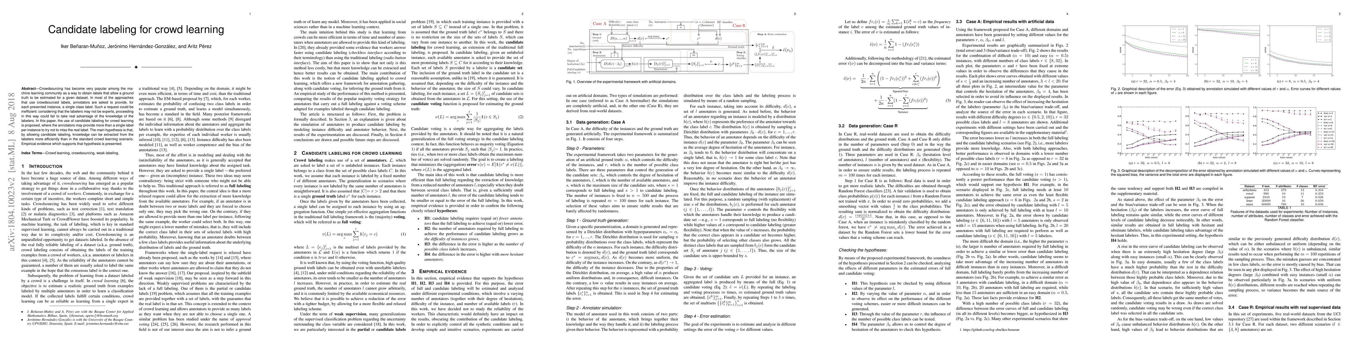 Crowdsourcing has become very popular among the machine learning community as a way to obtain labels that allow a ground truth to be estimated for a given dataset. In most of the approaches that use crowdsourced labels, annotators are asked to provide, for each presented instance, a single class label. Such a request could be inefficient, that is, considering that the labelers may not be experts, that way to proceed could fail to take real advantage of the knowledge of the labelers. In this paper, the use of candidate labeling for crowd learning is proposed, where the annotators may provide more than a single label per instance to try not to miss the real label. The main hypothesis is that, by allowing candidate labeling, knowledge can be extracted from the labelers more efficiently by than in the standard crowd learning scenario. Empirical evidence which supports that hypothesis is presented.
