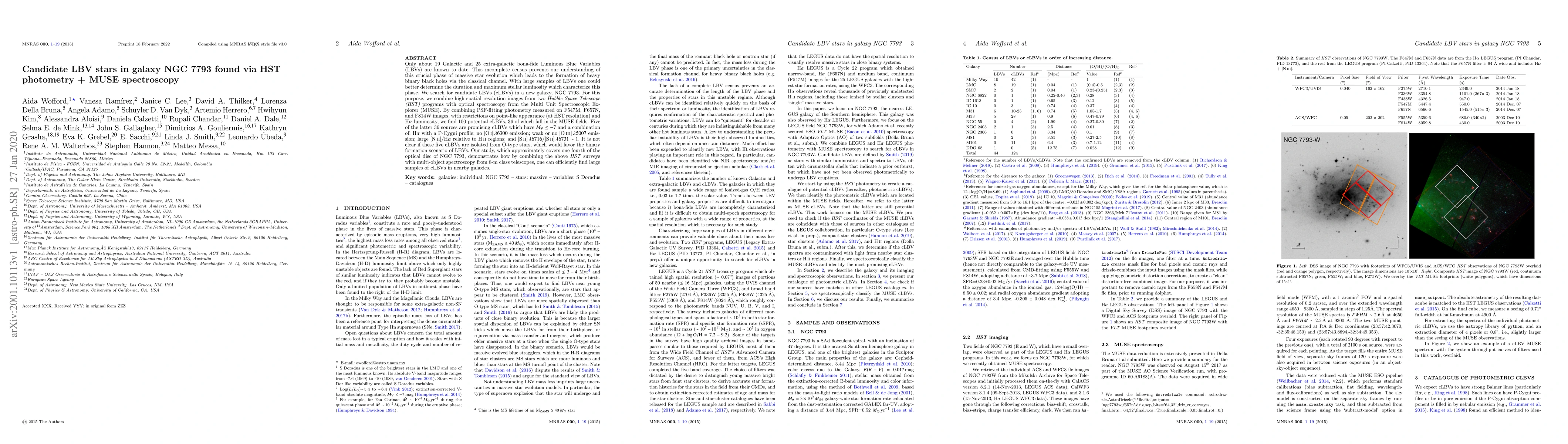 This paper identifies 100 candidate Luminous Blue Variables (cLBVs) in the galaxy NGC 7793 using HST photometry and MUSE spectroscopy, finding 5 promising cLBVs with specific spectral characteristics indicative of the LBV phase. The study highlights the potential of combining HST and MUSE data to efficiently discover large samples of cLBVs in nearby galaxies.