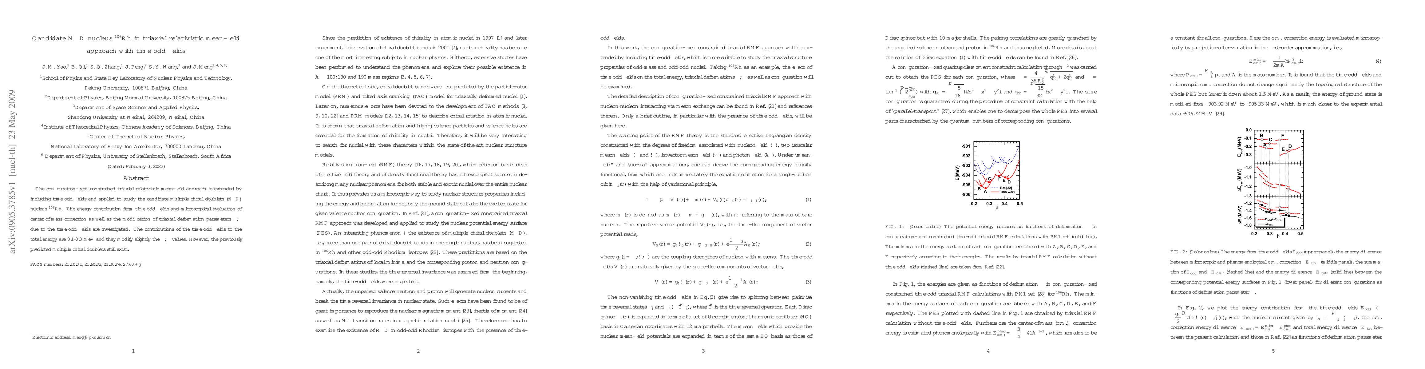 This paper investigates the candidate MKiD nucleus 106Rh using a triaxial relativistic mean-field approach with time-odd fields, finding that these fields contribute 0.1-0.3 MeV to the total energy and slightly modify the gamma values, while confirming the existence of multiple chiral doublets.