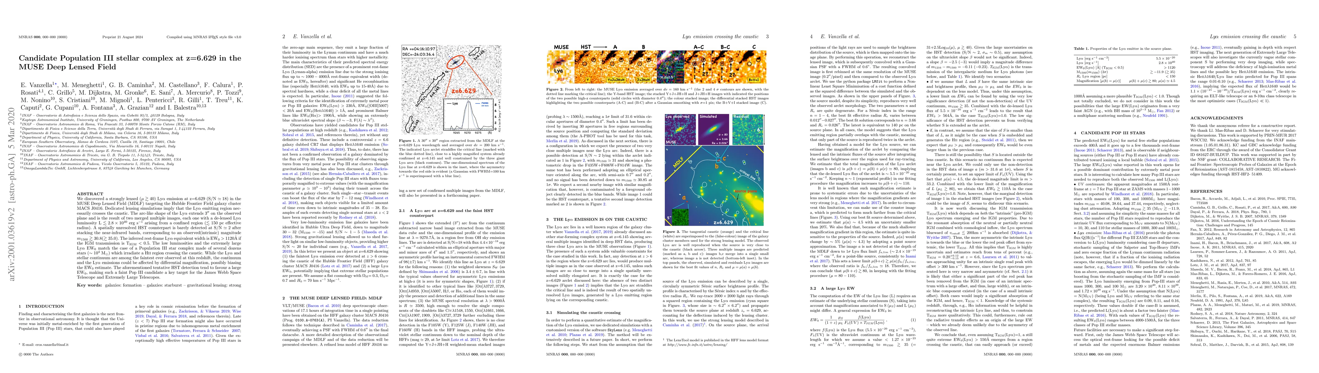 Scientists have discovered a strongly lensed Lya emission from a Population III star complex at z=6.629, with the first detected in such a distant universe; the discovery was made possible by the MUSE Deep Lensed Field targeting the Hubble Frontier Field galaxy cluster.
