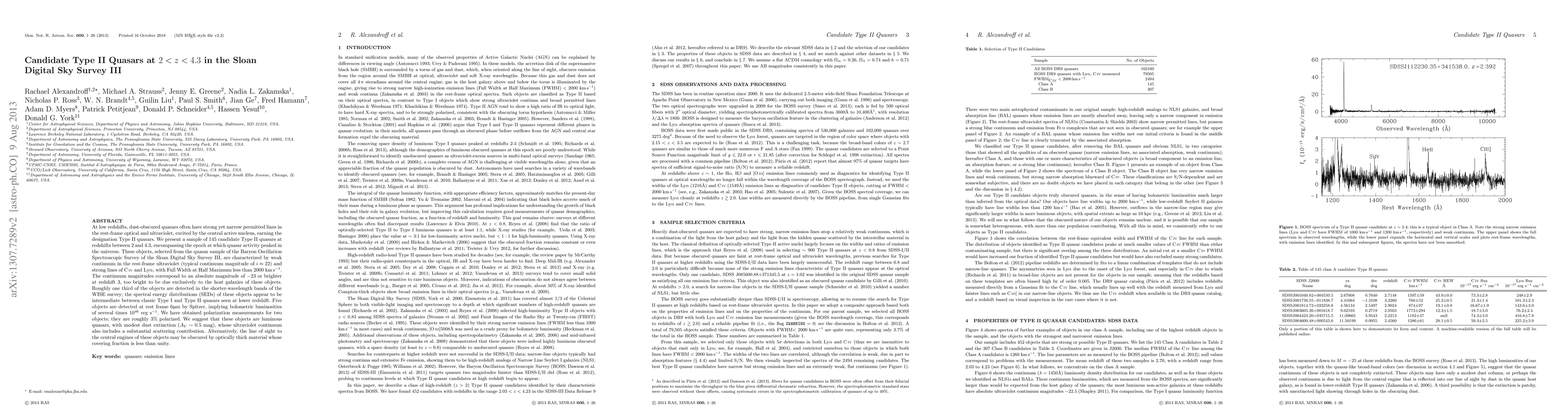 This research identifies 145 candidate Type II quasars at redshifts 2-4.3, characterized by weak UV continuum and strong narrow emission lines. These objects, intermediate between classic Type I and Type II quasars, show modest dust extinction or partially obscured central engines, with estimated bolometric luminosities of several times 10^46 erg s^-1.