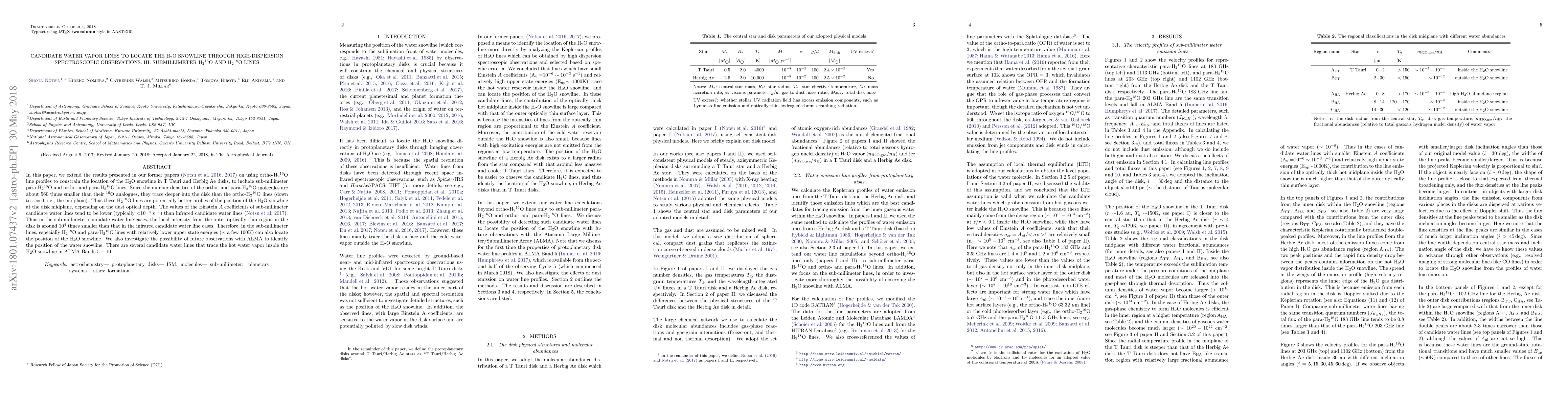 This paper extends previous research on locating the H₂O snowline in T Tauri and Herbig Ae disks using high-dispersion spectroscopy, now incorporating sub-millimeter H₂¹⁶O and H₂¹⁸O lines. The lower Einstein A coefficients of sub-millimeter lines suggest they can trace deeper into the disk, potentially identifying the H₂O snowline at the midplane.