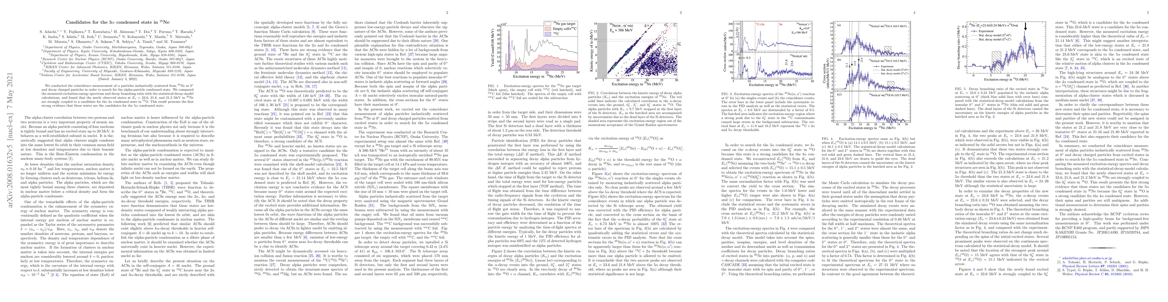 We conducted the coincidence measurement of $\alpha$ particles inelastically scattered from ${}^{20}$Ne at $0^{\circ}$ and decay charged particles in order to search for the alpha-particle condensed state. We compared the measured excitation-energy spectrum and decay branching ratio with the statistical-decay-model calculations, and found that the newly observed states at $E_x$ = 23.6, 21.8, and 21.2 MeV in ${}^{20}$Ne are strongly coupled to a candidate for the 4$\alpha$ condensed state in ${}^{16}$O. This result presents the first strong evidence that these states are the candidates for the 5$\alpha$ condensed state.
