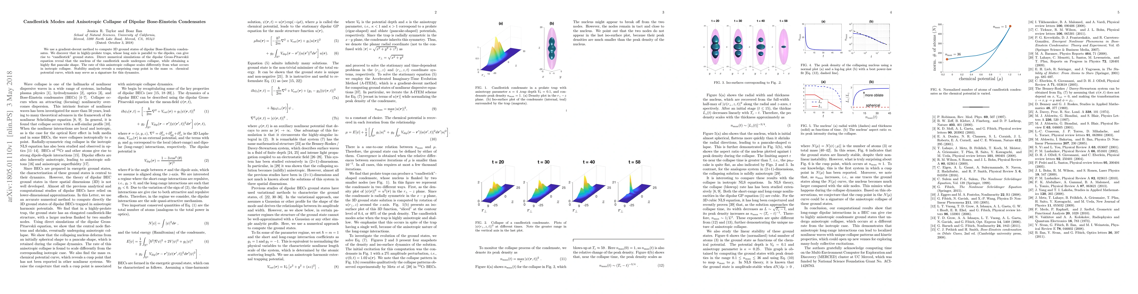 We use a gradient-decent method to compute 3D ground states of dipolar Bose-Einstein conden- sates. We discover that in highly-prolate traps, whose long axis is parallel to the dipoles, can give rise to candlestick ground states. Direct numerical simulations of the dipolar Gross-Pitaevskii equation reveal that the nucleus of the candlestick mode undergoes collapse, while obtaining a highly flat pancake shape. The rate of this anisotropic collapse scales differently from what occurs in isotropic collapse. Stability analysis reveals a surprising cusp point in the mass vs. chemical potential curve, which may serve as a signature for this dynamics.