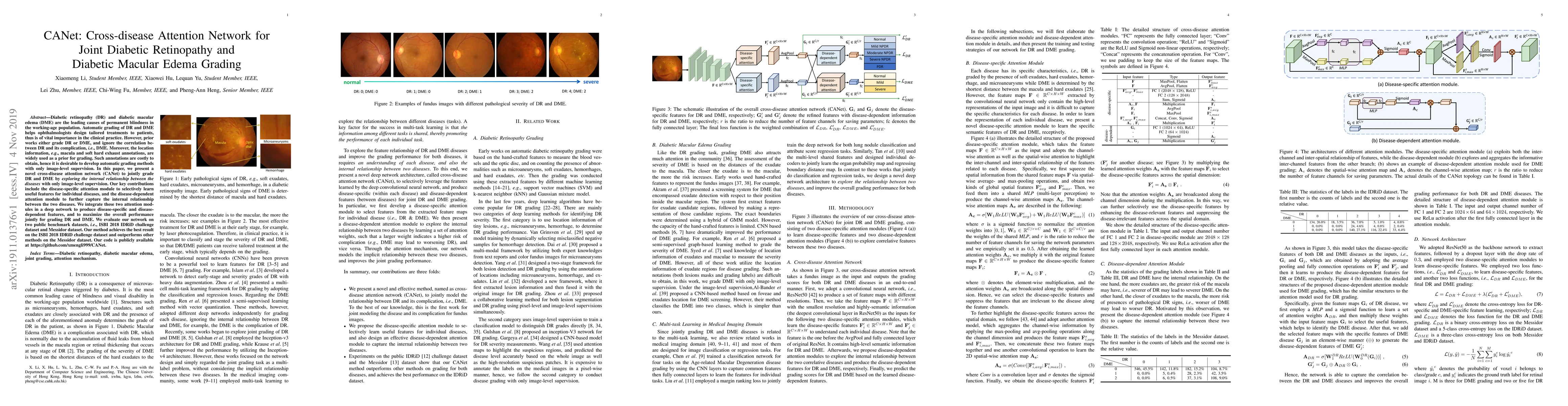 The CANet is a novel cross-disease attention network designed to jointly grade diabetic retinopathy and diabetic macular edema using only image-level supervision, leveraging disease-specific and disease-dependent attention modules to capture the relationship between the two diseases. The method outperforms existing approaches on benchmark datasets and is publicly available for further research.