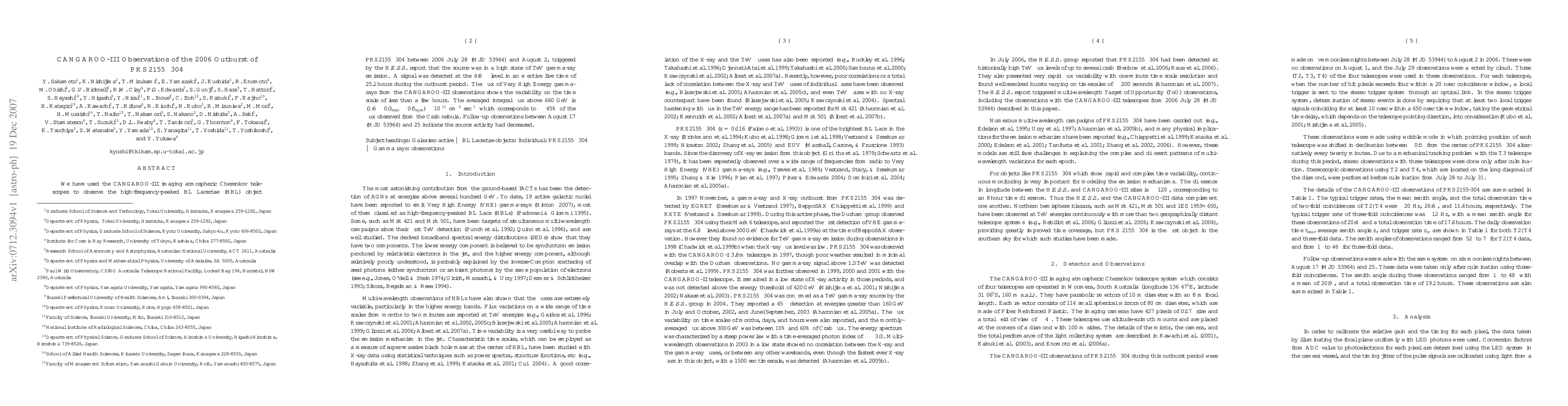 The CANGAROO-III telescopes detected a significant signal from the HBL object PKS 2155-304 during its 2006 outburst, showing variability on a timescale of several hours. The observed flux at TeV energies was ~45% of the Crab nebula's flux, indicating high activity. Follow-up observations later showed a decrease in source activity.