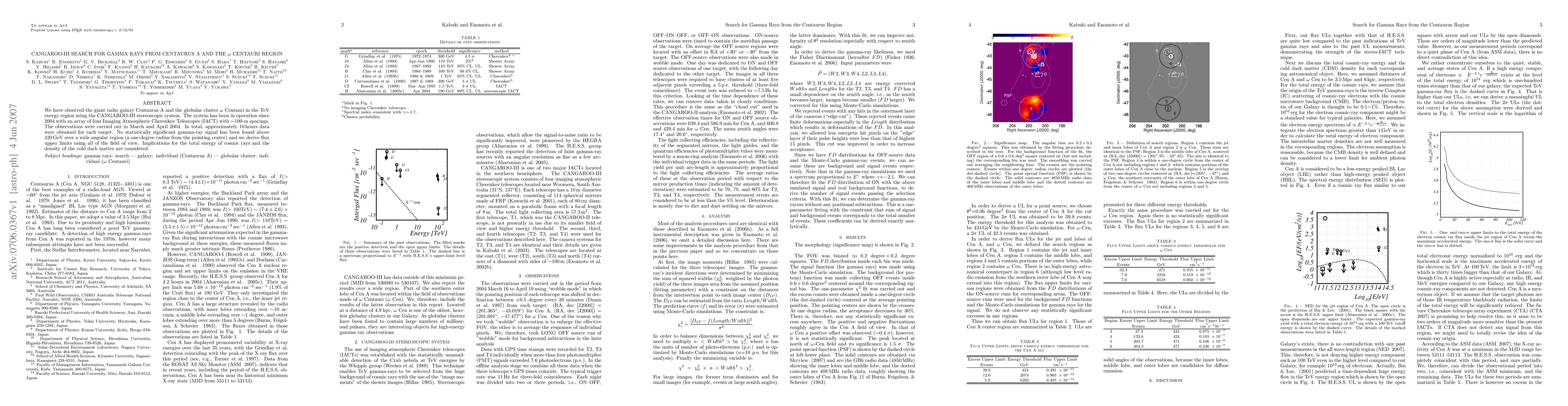 Researchers used a gamma-ray detector to study Centaurus A and omega Centauri, finding no statistically significant gamma-ray signal above 420 GeV in their data. The results provide new insights into cosmic rays and the density of dark matter.