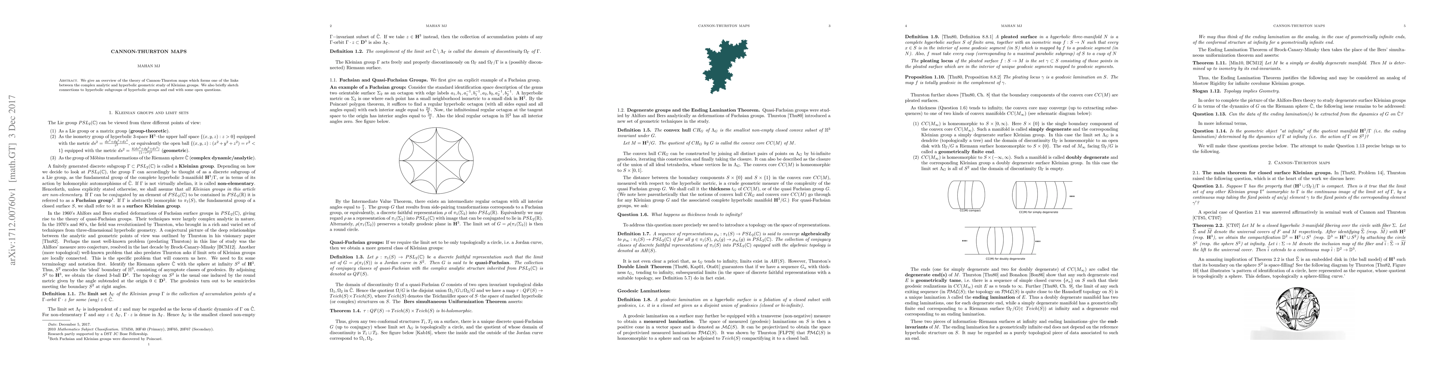 We give an overview of the theory of Cannon-Thurston maps which forms one of the links between the complex analytic and hyperbolic geometric study of Kleinian groups. We also briefly sketch connections to hyperbolic subgroups of hyperbolic groups and end with some open questions.