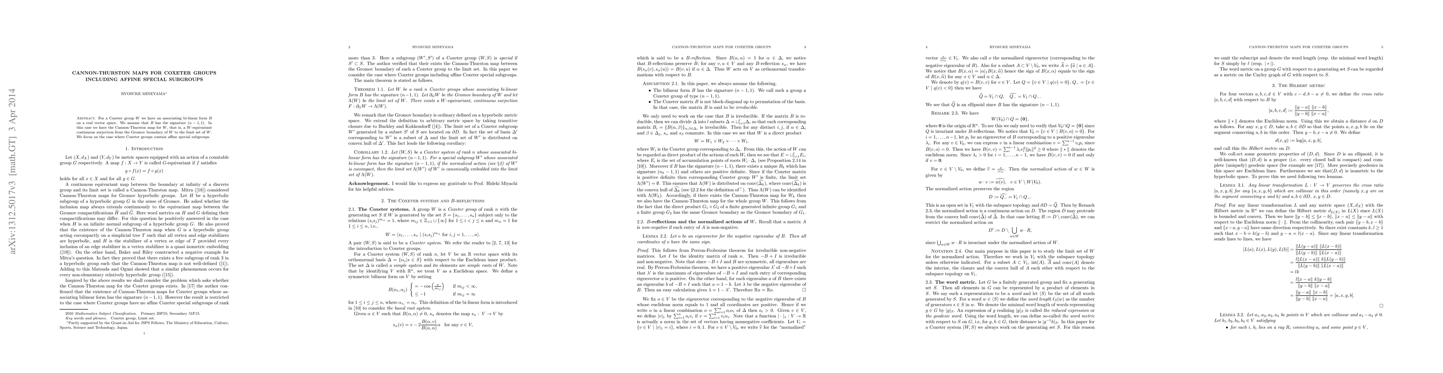 This paper explores the Cannon-Thurston map for Coxeter groups with a bilinear form of signature $(n-1,1)$, specifically focusing on Coxeter groups that include affine special subgroups, providing a $W$-equivariant continuous surjection from the Gromov boundary to the limit set.