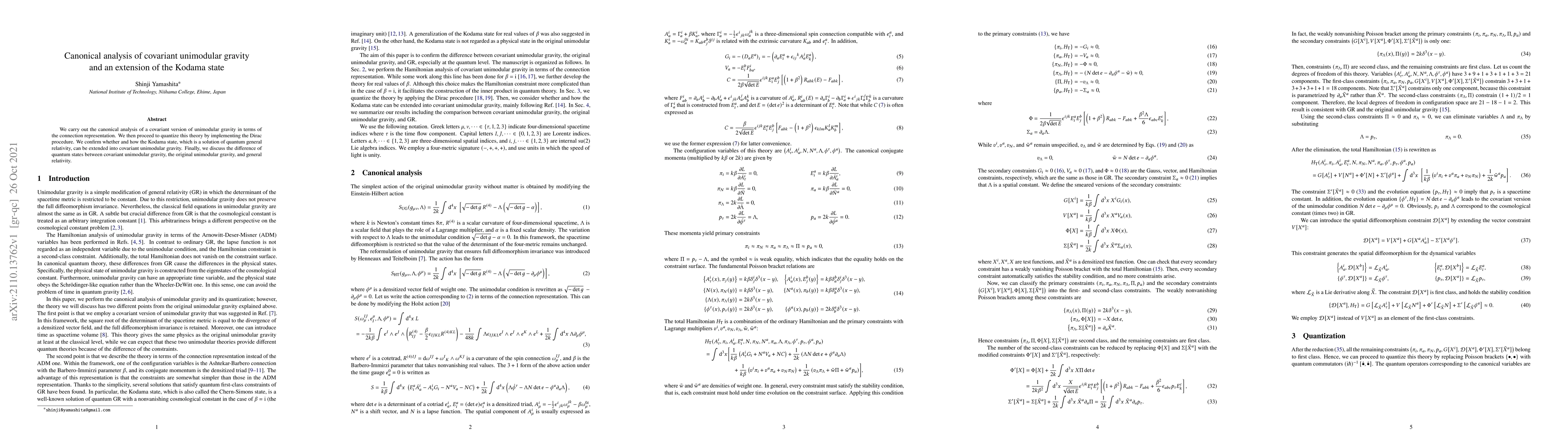 The paper presents a detailed canonical analysis and quantization of covariant unimodular gravity, identifying its first-class Hamiltonian constraint and extending the Kodama state to accommodate a non-vanishing cosmological constant.