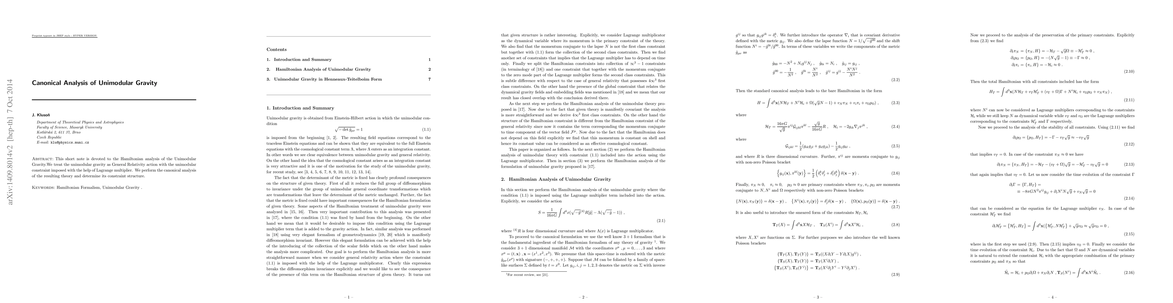 This paper conducts a Hamiltonian analysis of Unimodular Gravity, treating it as General Relativity with an unimodular constraint. The study determines the resulting theory's constraint structure.