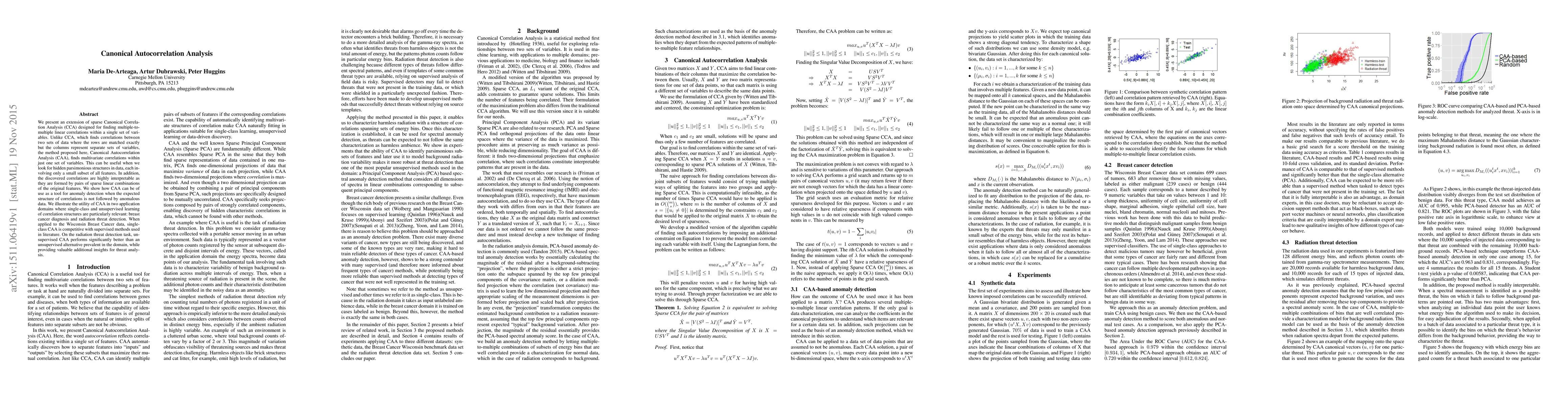 This paper introduces Canonical Autocorrelation Analysis (CAA), an extension of sparse Canonical Correlation Analysis for identifying multiple-to-multiple correlations within a single dataset, offering interpretable sparse linear combinations. The method is shown to be effective in anomaly detection and outperforms existing unsupervised methods in breast cancer diagnosis and radiation threat detection.