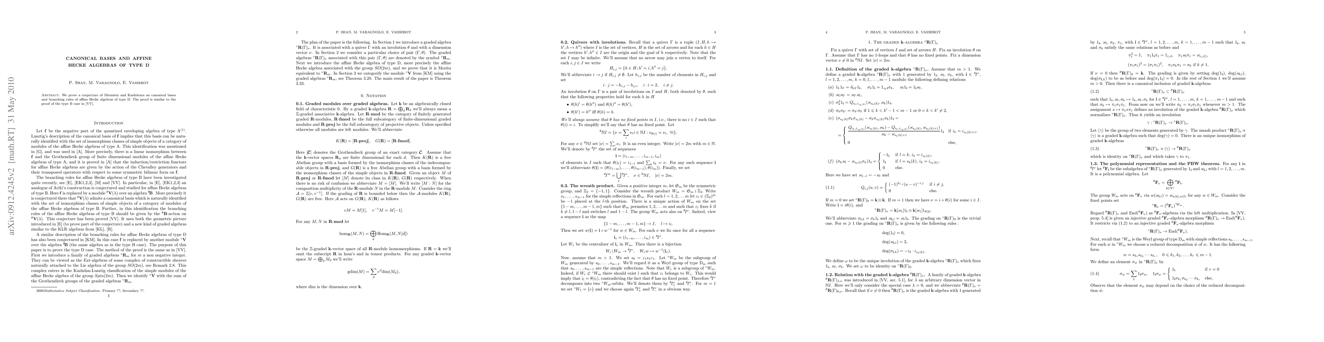 The paper employs algebraic techniques, specifically focusing on canonical bases and affine Hecke algebras of type D, to prove a conjecture by Kashiwara and Miemietz concerning branching rules.