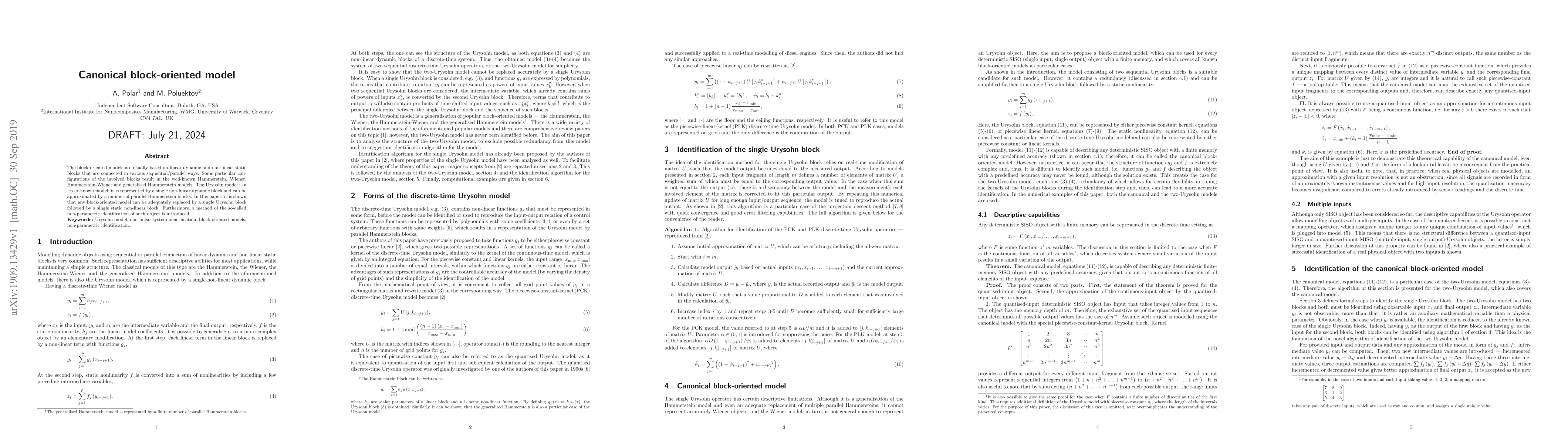 Researchers show that any block-oriented model can be simplified to a single Urysohn block followed by a single static non-linear block, enabling more efficient identification of systems.