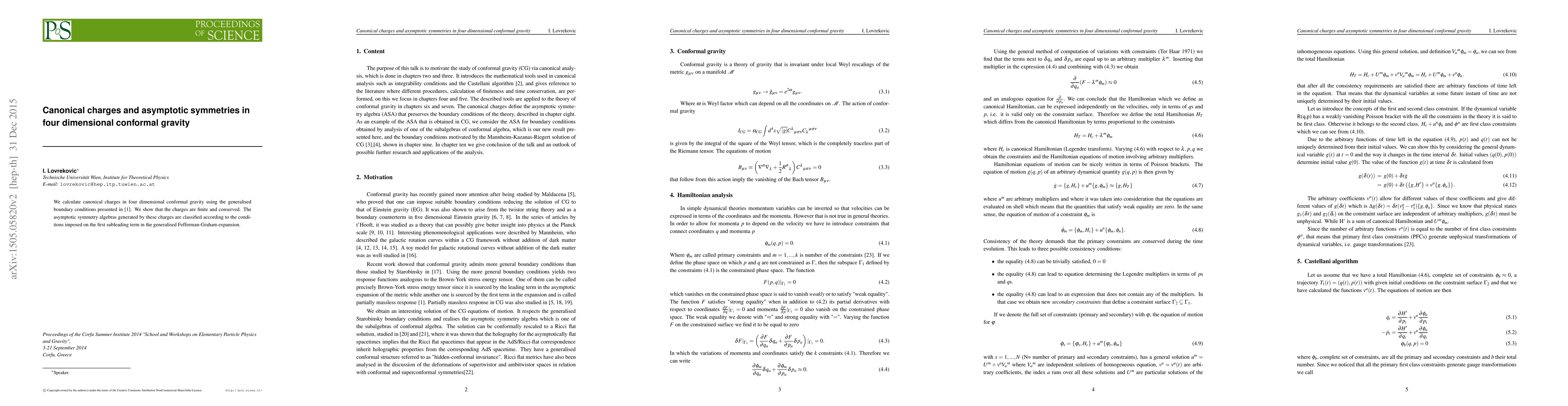 This paper calculates finite and conserved canonical charges in four-dimensional conformal gravity using generalised boundary conditions. It classifies the asymptotic symmetry algebras generated by these charges based on the first subleading term in the generalised Fefferman-Graham expansion.