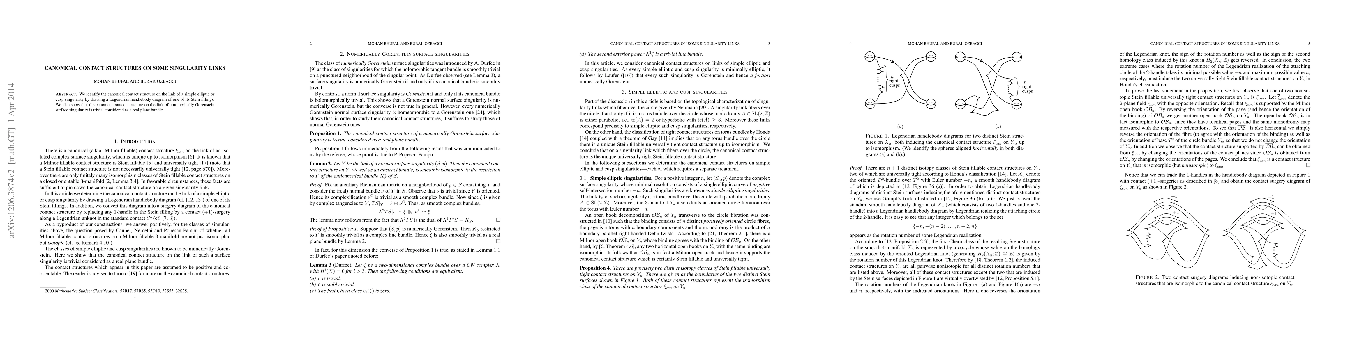 We identify the canonical contact structure on the link of a simple elliptic or cusp singularity by drawing a Legendrian handlebody diagram of one of its Stein fillings. We also show that the canonical contact structure on the link of a numerically Gorenstein surface singularity is trivial considered as a real plane bundle.
