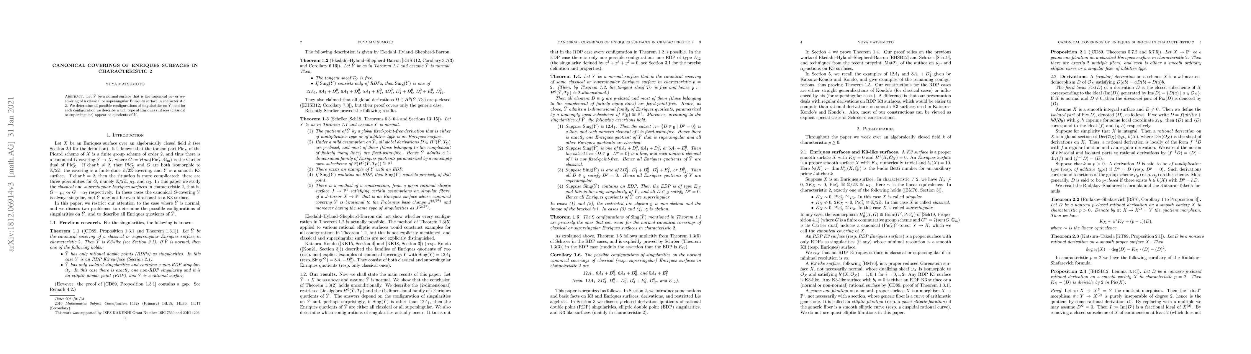 Let $\bar{Y}$ be a normal surface that is the canonical $\mu_2$- or $\alpha_2$-covering of a classical or supersingular Enriques surface in characteristic $2$. We determine all possible configurations of singularities on $\bar{Y}$, and for each configuration we describe which type of Enriques surfaces (classical or supersingular) appear as quotients of $\bar{Y}$.