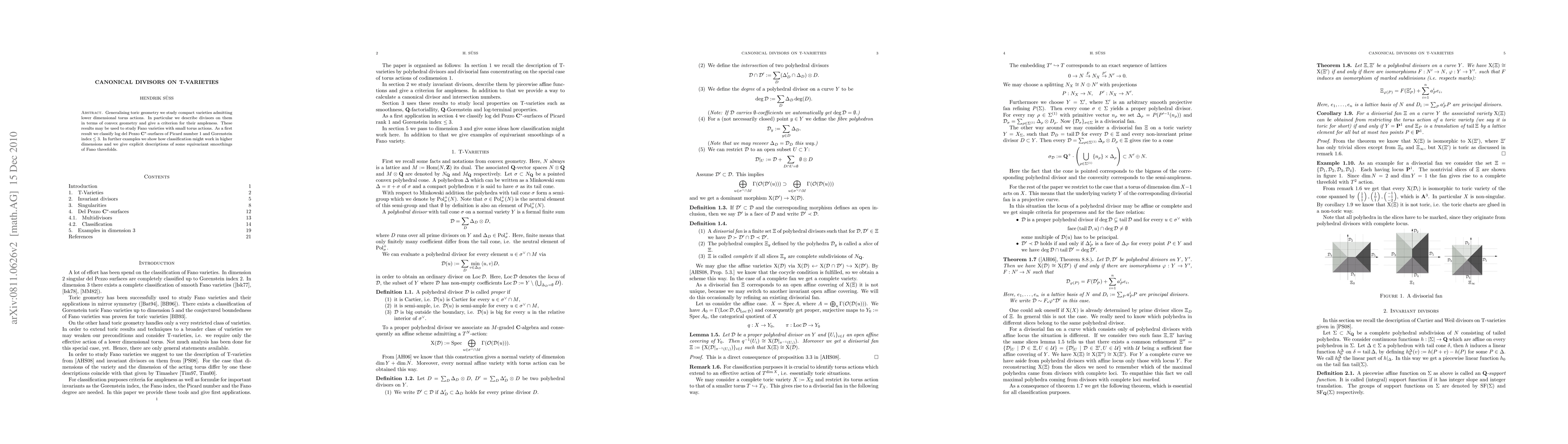 This paper generalizes toric geometry to study compact varieties with lower-dimensional torus actions, describing divisors via convex geometry and providing a criterion for their ampleness. It classifies log del Pezzo C*-surfaces of Picard number 1 and Gorenstein index less than 4, and offers examples of classification in higher dimensions with explicit equivariant smoothings of Fano threefolds.