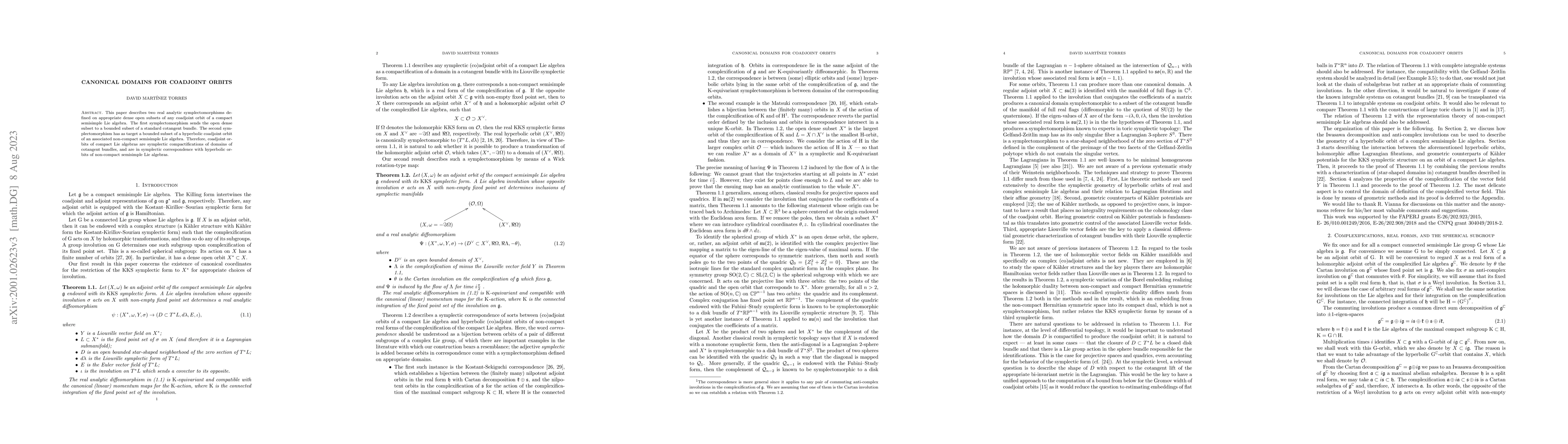 This paper describes two real analytic symplectomorphisms defined on appropriate dense open subsets of any coadjoint orbit of a compact semisimple Lie algebra. The first symplectomorphism sends the open dense subset to a bounded subset of a standard cotangent bundle. The second symplectomorphism has target a bounded subset of a hyperbolic coadjoint orbit of an associated non-compact semi-simple Lie algebra. Therefore, coadjoint orbits of compact Lie algebras are symplectic compactifications of domains of cotangent bundles, and are in symplectic duality with hyperbolic orbits of non-compact semisimple Lie algebras.