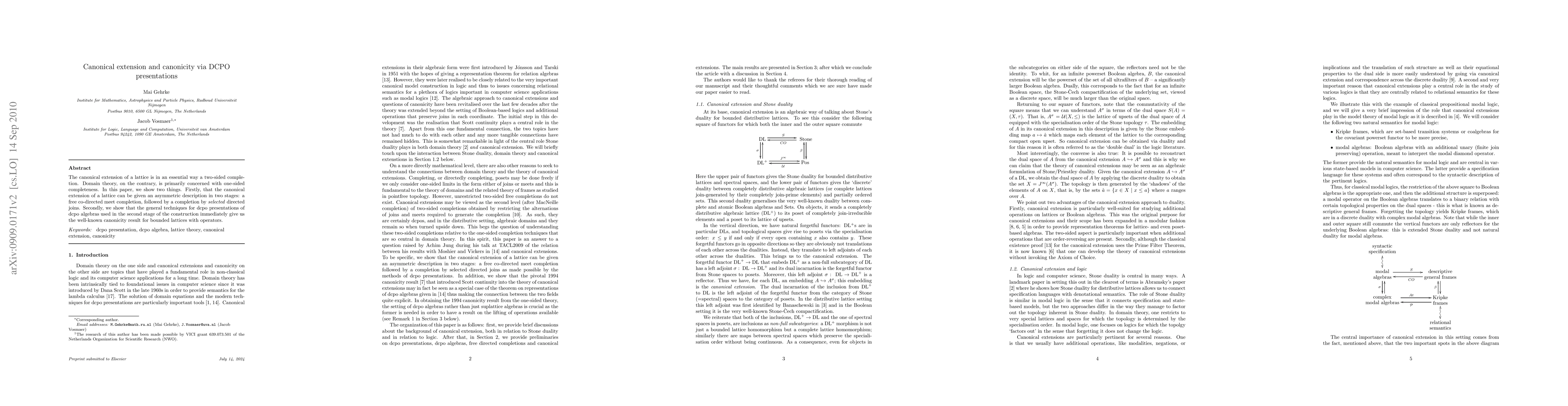 The canonical extension of a lattice is in an essential way a two-sided completion. Domain theory, on the contrary, is primarily concerned with one-sided completeness. In this paper, we show two things. Firstly, that the canonical extension of a lattice can be given an asymmetric description in two stages: a free co-directed meet completion, followed by a completion by \emph{selected} directed joins. Secondly, we show that the general techniques for dcpo presentations of dcpo algebras used in the second stage of the construction immediately give us the well-known canonicity result for bounded lattices with operators.