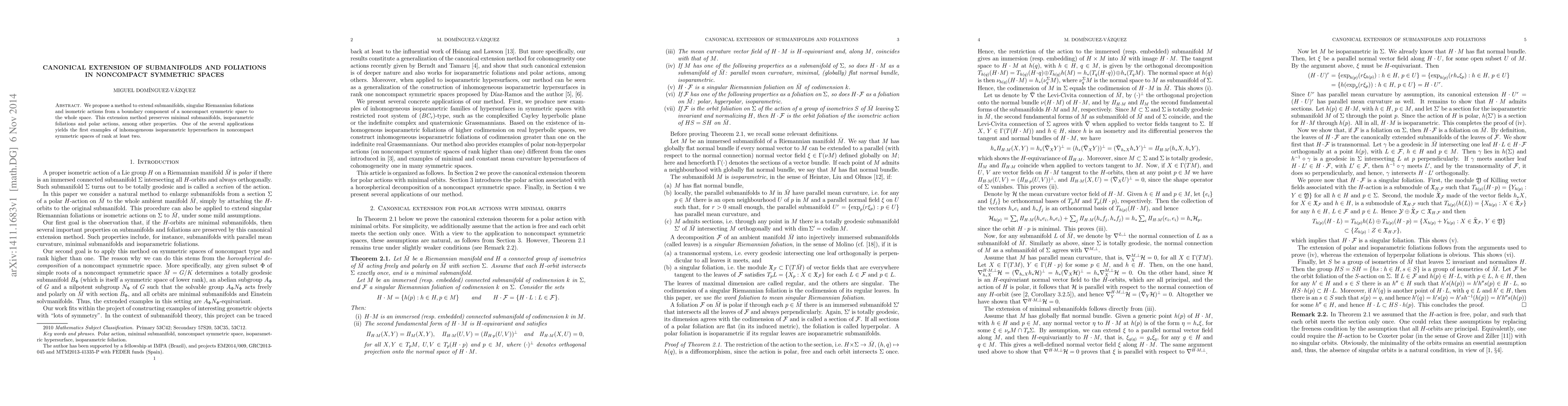 This paper presents a method to extend submanifolds, foliations, and isometric actions from the boundary of noncompact symmetric spaces to the entire space, preserving properties like minimality and isoparametricity. An application of this method yields the first examples of inhomogeneous isoparametric hypersurfaces in noncompact symmetric spaces of rank at least two.