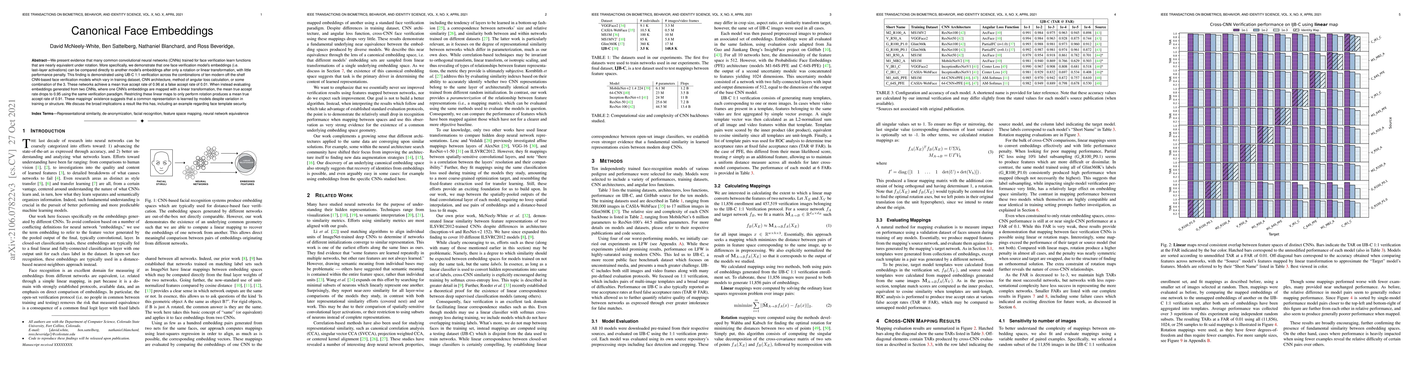 We present evidence that many common convolutional neural networks (CNNs) trained for face verification learn functions that are nearly equivalent under rotation. More specifically, we demonstrate that one face verification model's embeddings (i.e. last-layer activations) can be compared directly to another model's embeddings after only a rotation or linear transformation, with little performance penalty. This finding is demonstrated using IJB-C 1:1 verification across the combinations of ten modern off-the-shelf CNN-based face verification models which vary in training dataset, CNN architecture, method of angular loss calculation, or some combination of the 3. These networks achieve a mean true accept rate of 0.96 at a false accept rate of 0.01. When instead evaluating embeddings generated from two CNNs, where one CNN's embeddings are mapped with a linear transformation, the mean true accept rate drops to 0.95 using the same verification paradigm. Restricting these linear maps to only perform rotation produces a mean true accept rate of 0.91. These mappings' existence suggests that a common representation is learned by models despite variation in training or structure. We discuss the broad implications a result like this has, including an example regarding face template security.
