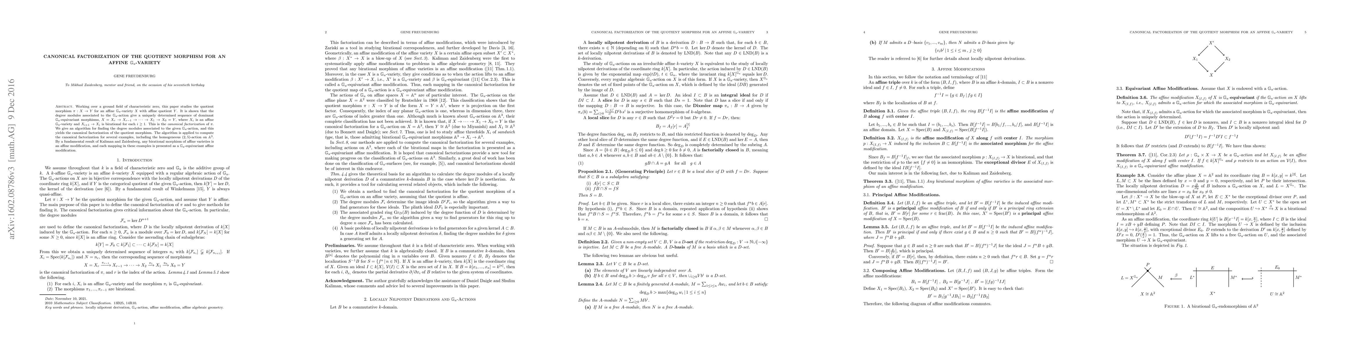 This paper presents a canonical factorization of the quotient morphism for an affine $\mathbb{G}_a$-variety, demonstrating a sequence of birational, $\mathbb{G}_a$-equivariant morphisms, and provides an algorithm to compute these factorizations, illustrated with examples including the homogeneous $(2,5)$-action on $\mathbb{A}^3$.