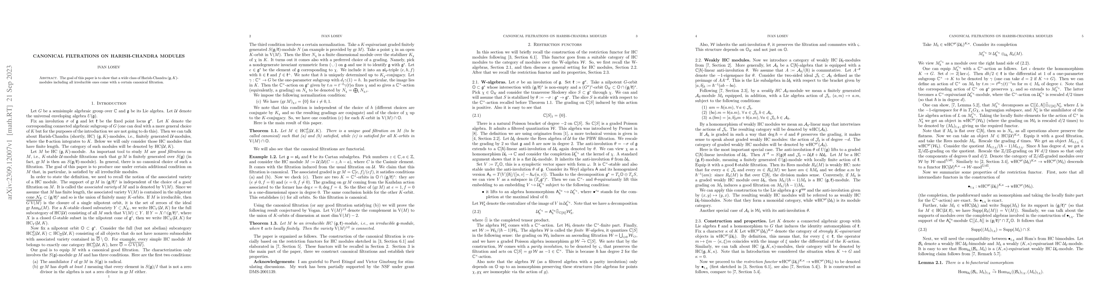 This paper demonstrates that a broad category of Harish-Chandra $(\mathfrak{g},K)$-modules, including all irreducible ones, possess a canonical filtration structure. The significance of this filtration is highlighted in the context of representation theory.