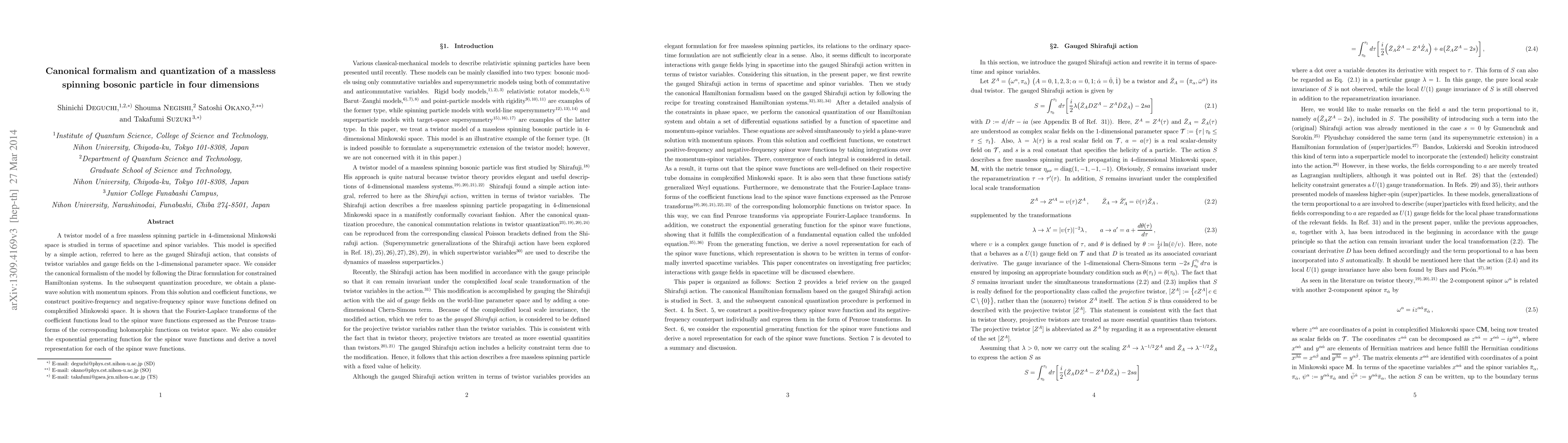 This paper studies a twistor model for a free massless spinning particle in 4D using the gauged Shirafuji action, and applies the Dirac canonical formalism for quantization. The resulting spinor wave functions are expressed as Penrose transforms of holomorphic functions on twistor space.
