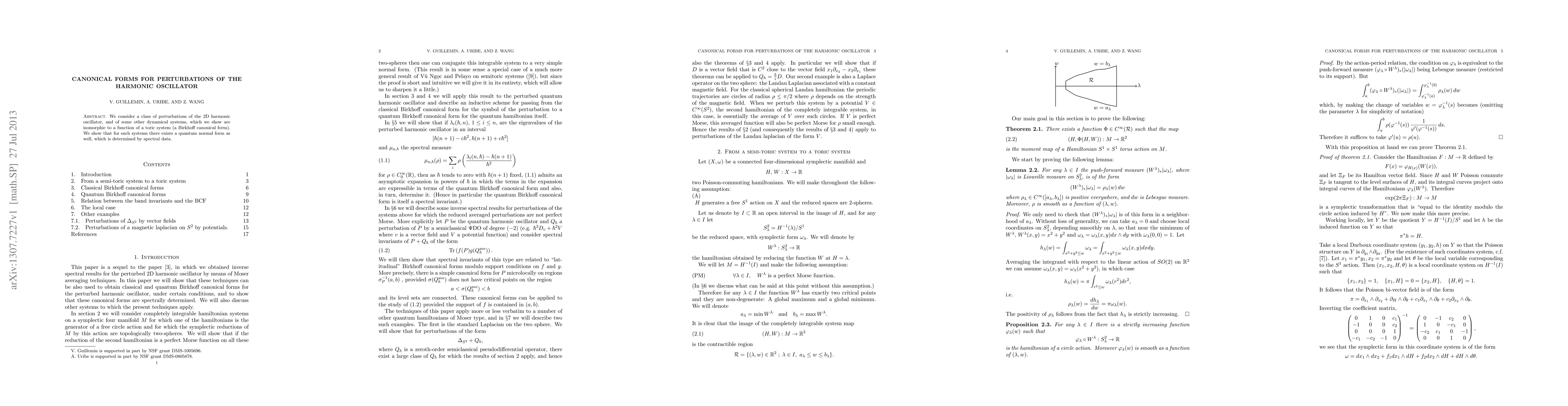 This paper explores perturbations of the 2D harmonic oscillator and related dynamical systems, demonstrating their isomorphism to a function of a toric system (Birkhoff canonical form). It also establishes the existence of a quantum normal form for these systems, determined by spectral data.