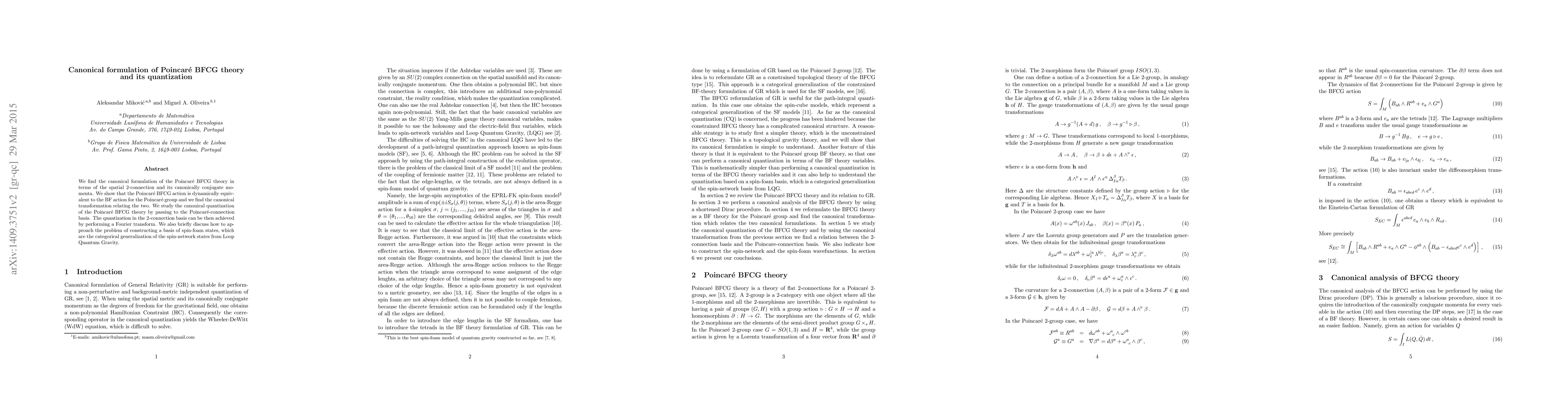 This paper presents the canonical formulation of Poincare BFCG theory, demonstrating its equivalence to the BF action for the Poincare group, and explores its canonical quantization via a Fourier transform in the 2-connection basis. It also touches on the construction of spin-foam states as a generalization of spin-network states.