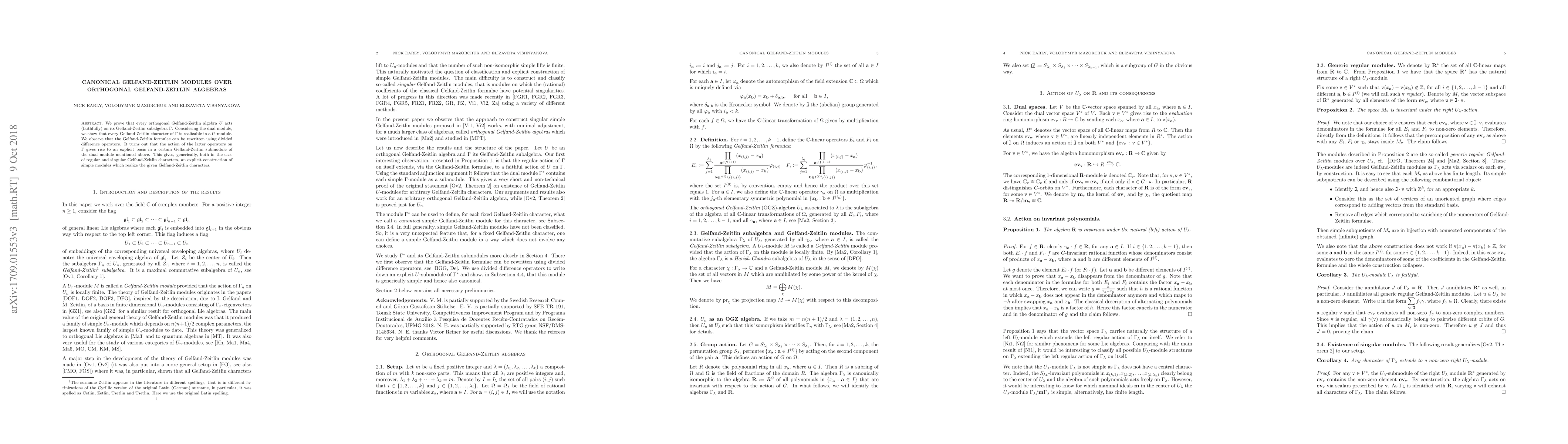 The paper proves that every orthogonal Gelfand-Zeitlin algebra $U$ acts on its Gelfand-Zeitlin subalgebra $\Gamma$ and realizes every Gelfand-Zeitlin character in a $U$-module, providing an explicit construction of simple modules via divided difference operators.
