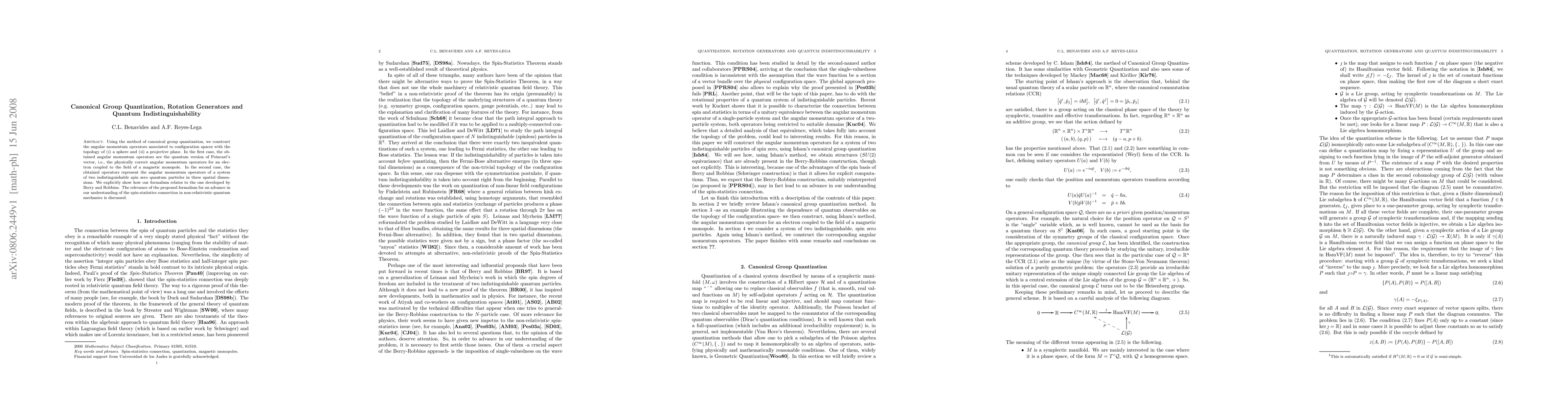 Using the method of canonical group quantization, we construct the angular momentum operators associated to configuration spaces with the topology of (i) a sphere and (ii) a projective plane. In the first case, the obtained angular momentum operators are the quantum version of Poincare's vector, i.e., the physically correct angular momentum operators for an electron coupled to the field of a magnetic monopole. In the second case, the obtained operators represent the angular momentum operators of a system of two indistinguishable spin zero quantum particles in three spatial dimensions. We explicitly show how our formalism relates to the one developed by Berry and Robbins. The relevance of the proposed formalism for an advance in our understanding of the spin-statistics connection in non-relativistic quantum mechanics is discussed.