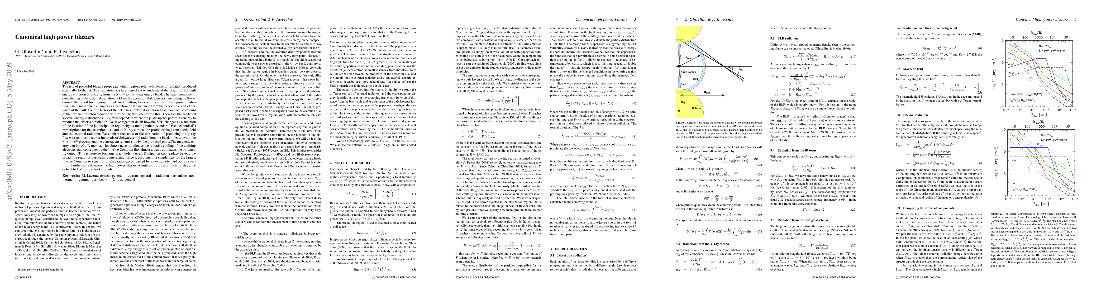 The jets of powerful blazars propagate within regions relatively dense of radiation produced externally to the jet. This radiation is a key ingredient to understand the origin of the high energy emission of blazars, from the X-ray to the gamma-ray energy band. These external radiation fields control the amount of the inverse Compton radiation with respect to the synchrotron flux. Therefore the predicted spectral energy distribution (SED) will depend on where the jet dissipates part of its energy to produce the observed radiation. We investigate in detail how the SED changes as a function of the location of the jet dissipation region, by assuming rather "standard" (i.e. "canonical") prescriptions for the accretion disk and its X-ray corona, the profile of the jet magnetic field and the external radiation. The magnetic energy density of a "canonical" jet almost never dominates the radiative cooling of the emitting electrons, and consequently the inverse Compton flux almost always dominates the bolometric output. This is more so for large black hole masses. Dissipation taking place beyond the broad line region is particularly interesting, since it accounts in a simple way for the largest inverse Compton to synchrotron flux ratios accompanied by an extremely hard X-ray spectrum. Furthermore it makes the high power blazars at high redshift useful tools to study the optical to UV cosmic backgrounds.