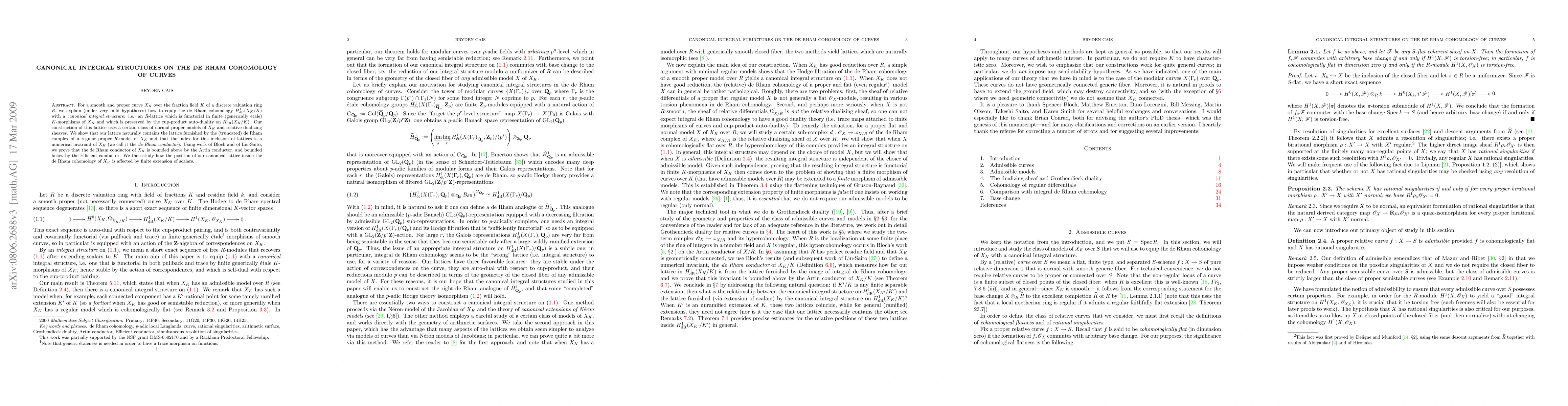 This paper constructs a canonical integral structure on the de Rham cohomology \( H^1_{dR}(X/K) \) of smooth and proper curves \( X \) over a fraction field \( K \) of a discrete valuation ring \( R \), showing it is functorial and preserved by duality. The construction utilizes normal proper models and dualizing sheaves, and establishes the de Rham conductor as a numerical invariant bounded by the Artin and Efficient conductors.
