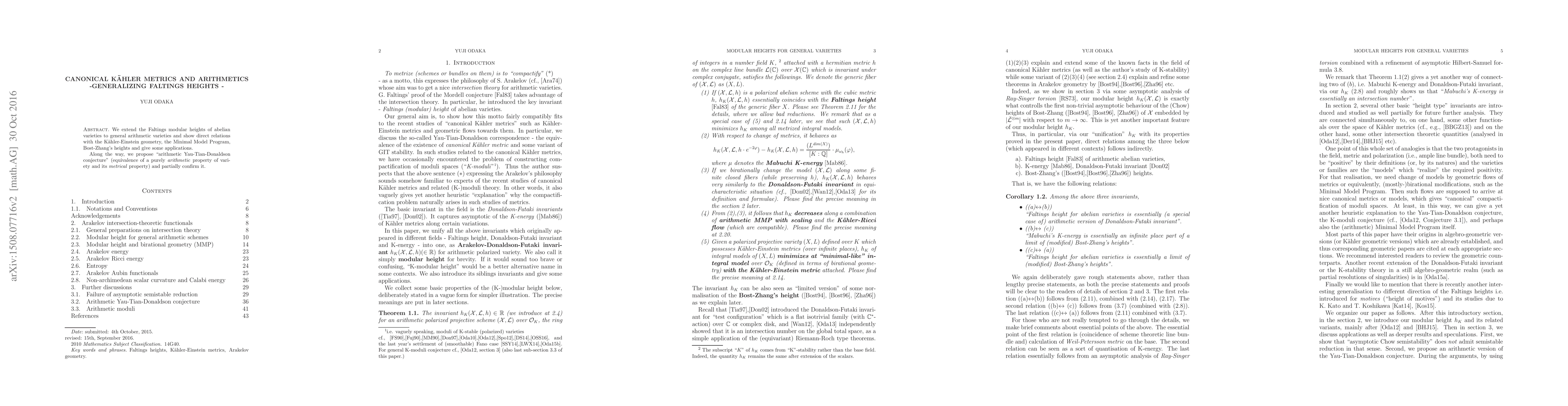 This paper extends Faltings modular heights to general arithmetic varieties, linking them to Kahler-Einstein geometry and the Minimal Model Program, and proposes an arithmetic Yau-Tian-Donaldson conjecture partially confirmed through these connections.