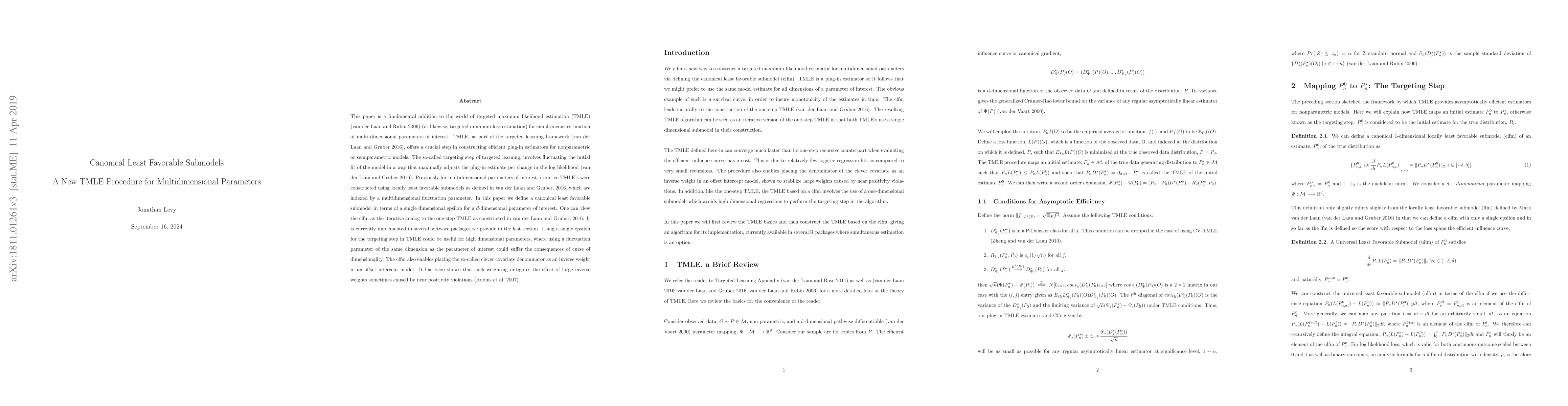 Researchers developed a new method called Canonical Least Favorable Submodels for targeted maximum likelihood estimation of multidimensional parameters, offering an efficient plug-in estimator for nonparametric models.