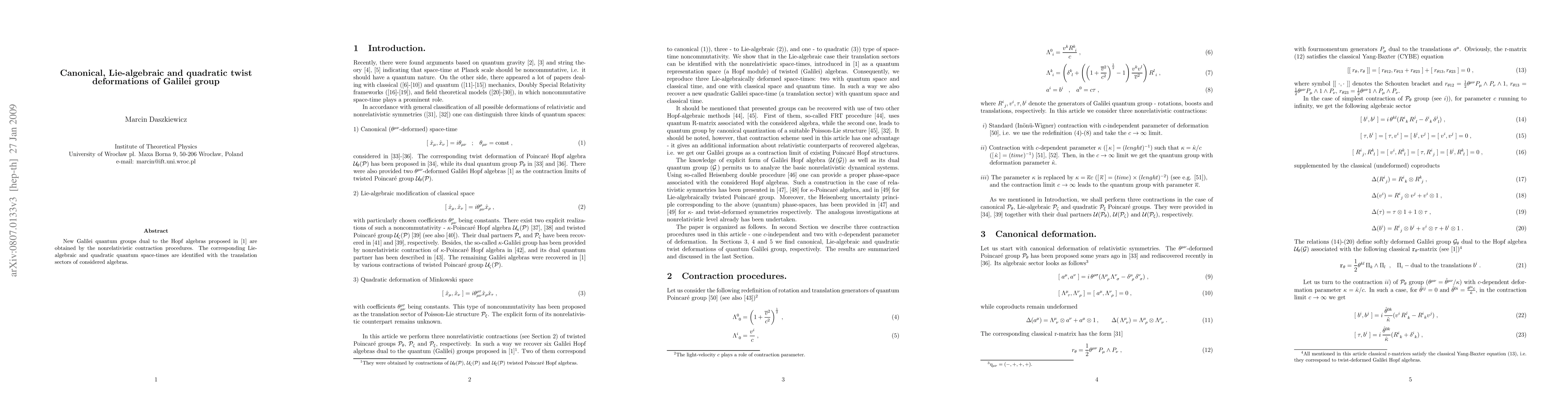 This paper introduces new Galilei quantum groups derived from Hopf algebras via nonrelativistic contraction, identifying their Lie-algebraic and quadratic deformations with translation sectors of these algebras. The focus is on the structure and properties of these deformations.