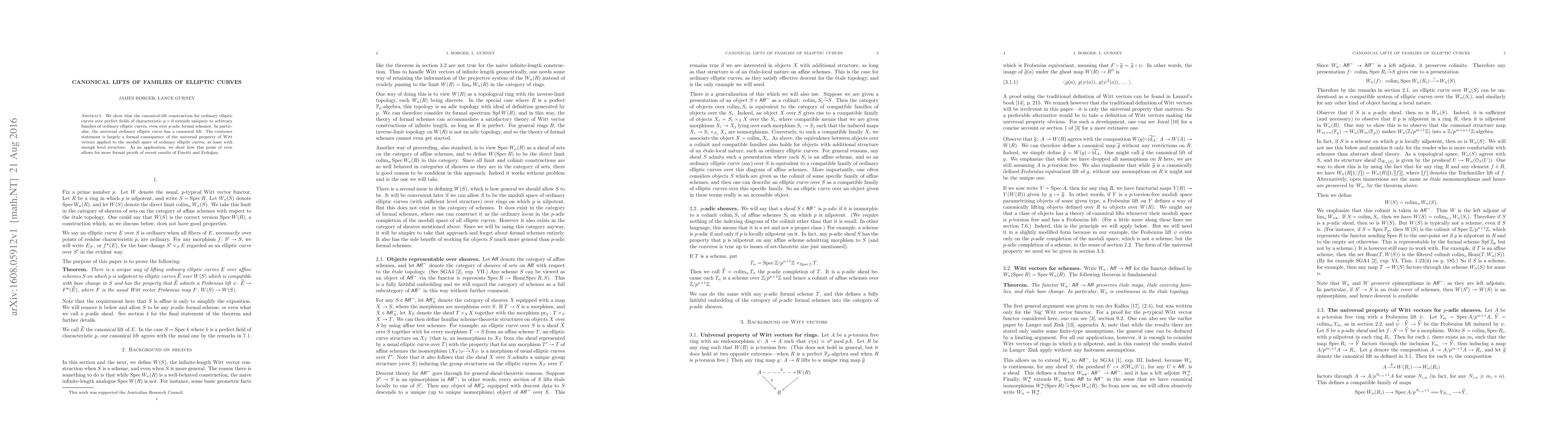 We show that the canonical-lift construction for ordinary elliptic curves over perfect fields of characteristic $p>0$ extends uniquely to arbitrary families of ordinary elliptic curves, even over $p$-adic formal schemes. In particular, the universal ordinary elliptic curve has a canonical lift. The existence statement is largely a formal consequence of the universal property of Witt vectors applied to the moduli space of ordinary elliptic curves, at least with enough level structure. As an application, we show how this point of view allows for more formal proofs of recent results of Finotti and Erdo\u{g}an.