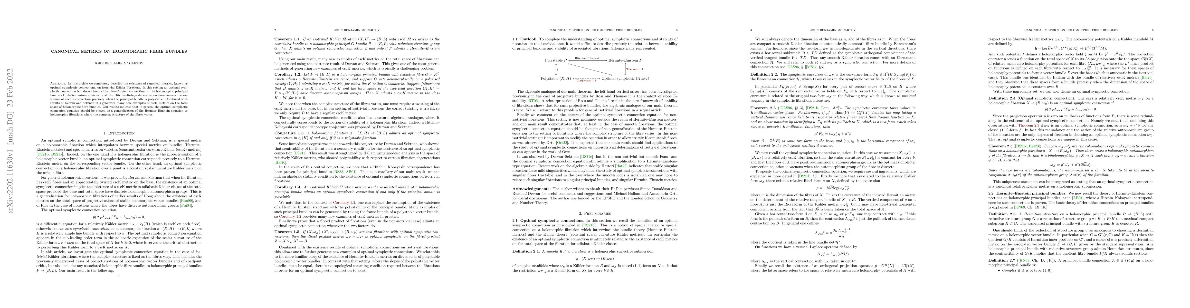 This paper discusses the existence of canonical metrics, termed optimal symplectic connections, on isotrivial Kähler fibrations. These metrics arise from Hermite-Einstein connections on the holomorphic principal bundle of relative automorphisms, with the Hitchin-Kobayashi correspondence confirming their existence under polystability conditions.