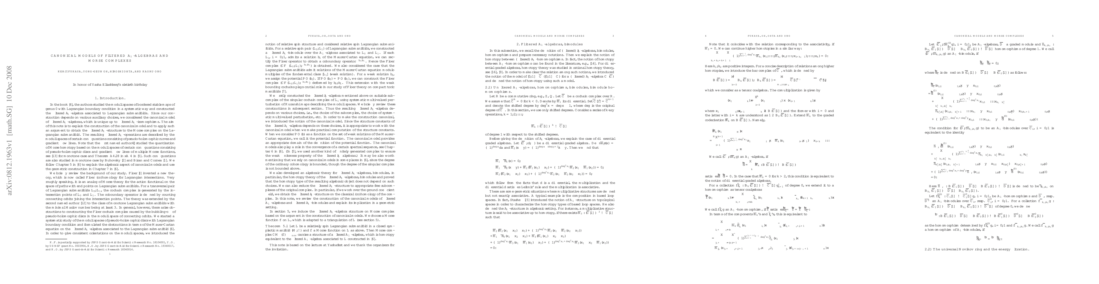 The purpose of this paper is two-fold. First we explain the construction of the canonical model of filtered $A_\infty$-algebras given in the authors' book [FOOO]. The canonical model plays a crucial role in the study of Lagrangian Floer theory on toric manifolds in our recent papers, arXiv:0802.1703 and arXiv:0810.5654. Then using a variation of the arguments used in that construction, we define a natural filtered $A_\infty$-structure on the Morse complex of a Morse function and its $A_\infty$ homotopy to the $A_\infty$-algebras on a Lagrangian submanifold constructed in [FOOO]. The corresponding graphical moduli spaces `summing over trees' involve holomorphic discs connected by the gradient flow lines.