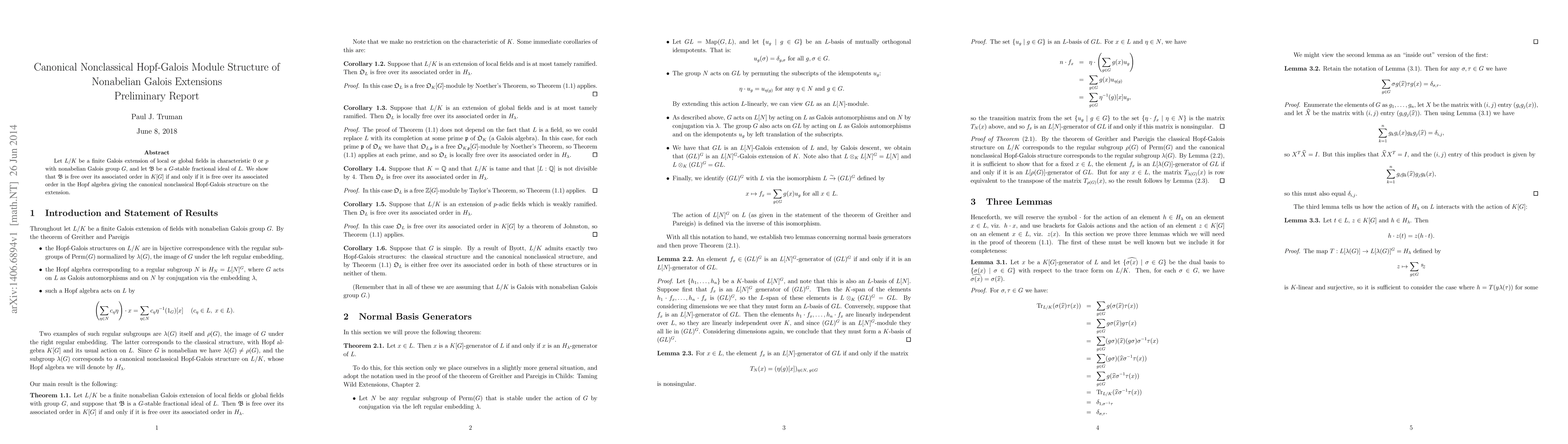 This paper demonstrates that a $G$-stable fractional ideal ${\mathfrak B}$ in a finite Galois extension $L/K$ is free over its associated order in $K[G]$ if and only if it is free over its associated order in the Hopf algebra defining the canonical nonclassical Hopf-Galois structure.